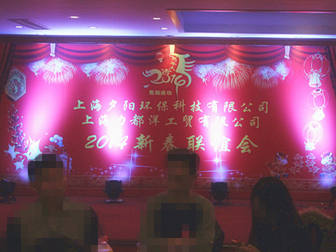 此时此刻我们欢聚一堂,举行上海夕阳环保科技有限公司和上海力都洋工贸有限公司2014年年会,共同畅想美好的明天。
