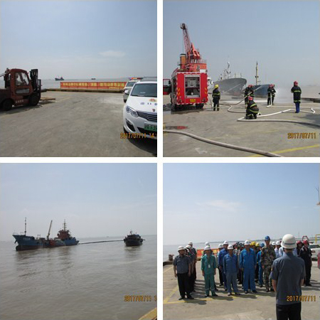 7月11日下午2点我司参加了主管部门组织的“2017年长兴岛港口区域反恐、消防、防污染应急演练”。